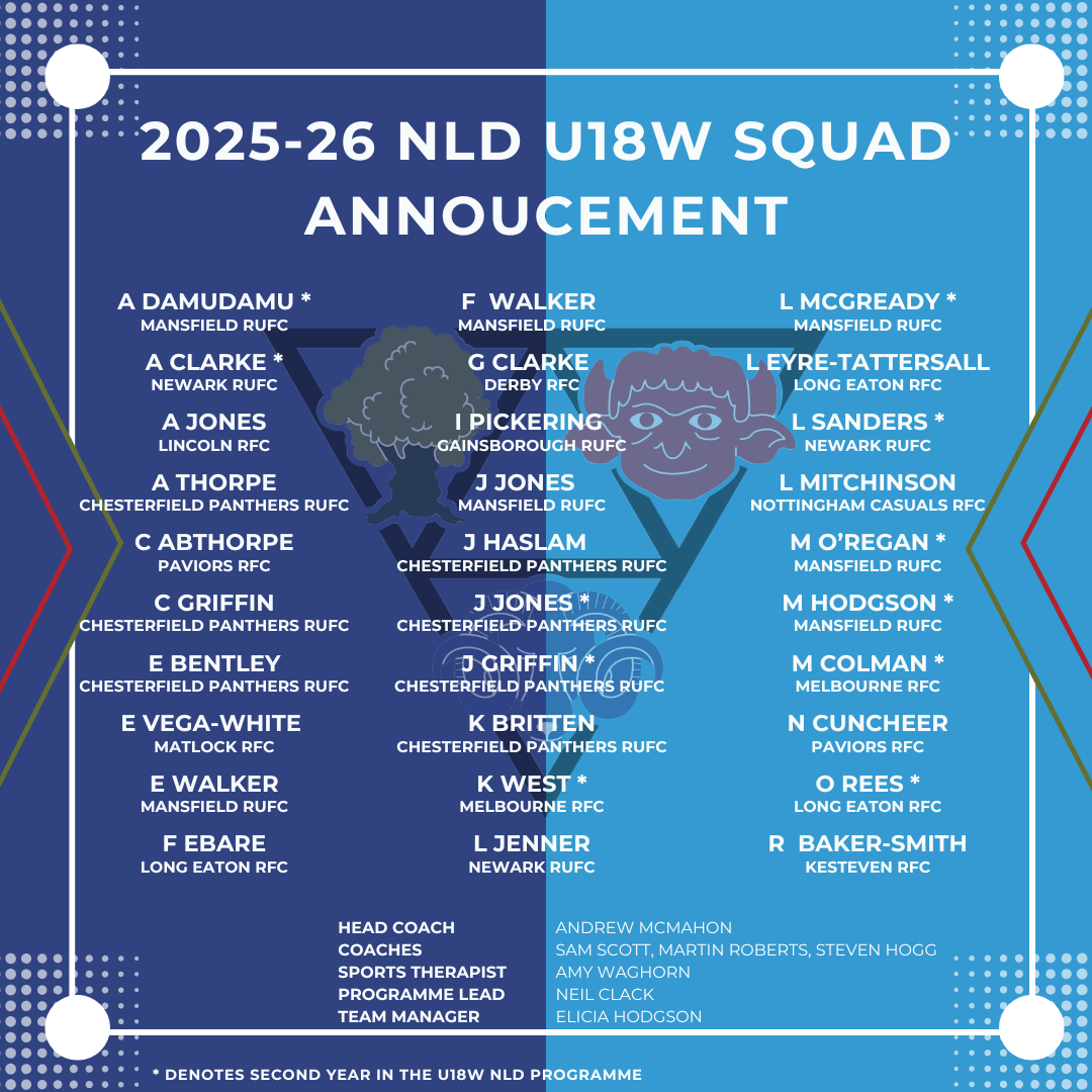 Team The NLD U18 Girls programme enters the 2025/26 season with an updated staff team and a new training base. We are pleased to share that Mellish Rugby Club has stepped up to host the squad this year, following months of planning to ensure the best environment for our players. Mellish already play a key role in supporting the NLD Women’s programme, and their involvement further strengthens the connection across the pathway from U18 through to Senior Women.